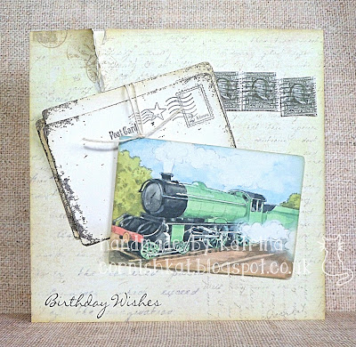 Today's oldie but goodie stamp is from the Penny Black clear stamp set 'Touch of Whimsy' which was part of my prize for winning the Penny Black category in Cardmaker of the Year for 2011. The background may look familiar if you saw yesterday's post - I was quite pleased with how my random ink smooshing came out so I took a colour copy on my printer to use on another project :o)